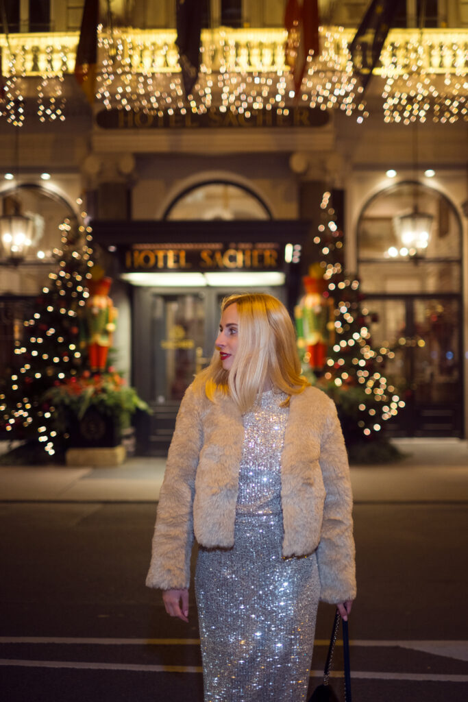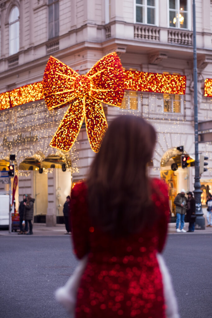 Pro tip: The Hotel Sacher Christmas facade is a pure dream — rich reds, gold tones, and evergreen garlands that photograph beautifully. Pair it with the nearby bow for a polished city series.