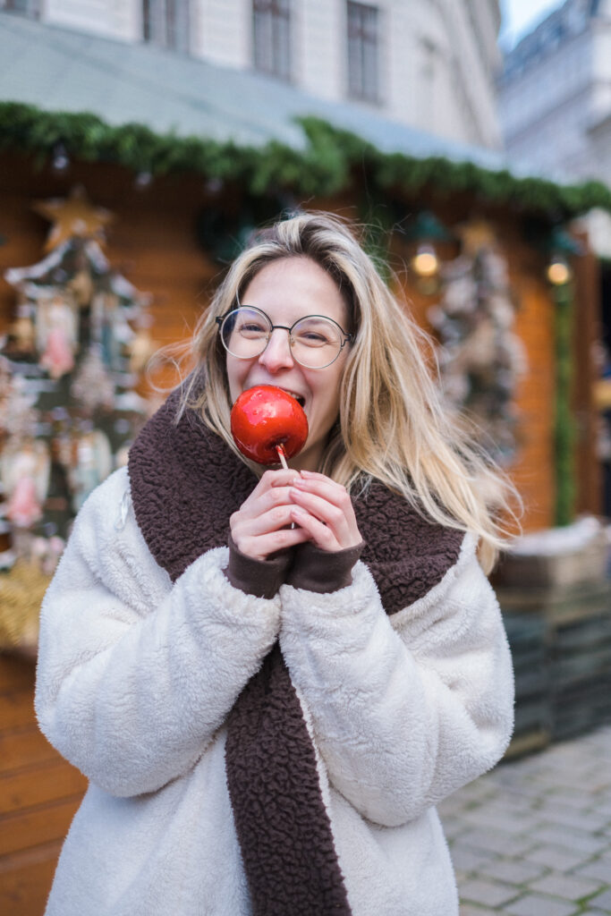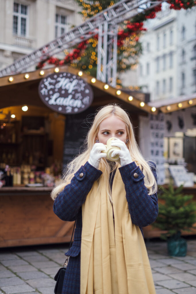 From mid-November until Christmas Eve, the city glows in gold and amber light, with every street corner wrapped in fairy lights and every window displaying something beautiful. The smell of roasted almonds and Glühwein fills the air, and every frame looks like it belongs in a romantic movie.